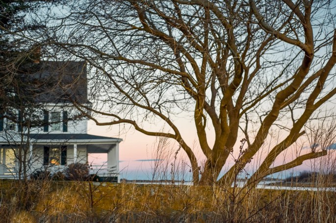 “Mornings meant ‘thick o’ fog’ that caught on rooftops and dripped, blurring weathered gray shingles while barely muting the deep pink of rosa rugosa or the hydrangea’s blue. Wood smoke filled the air on rainy days, pine sap on sunny ones, and wafting through it all was the briny smell of the sea.”