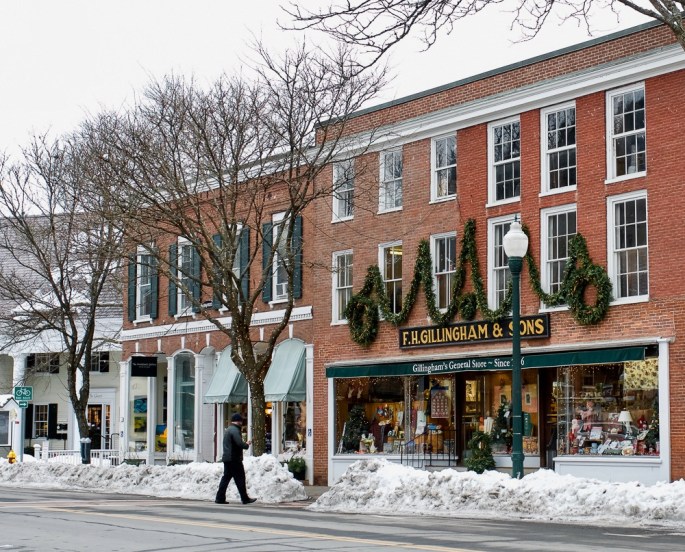 in downtown Woodstock, Vermont